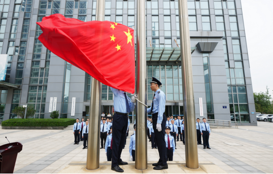 10月9日,青岛高新区税务局举行升国旗仪式,庆祝中华人民共和国成立76周年,弘扬伟大抗战精神,激励全体税务干部奋进新时代、建功新征程。
