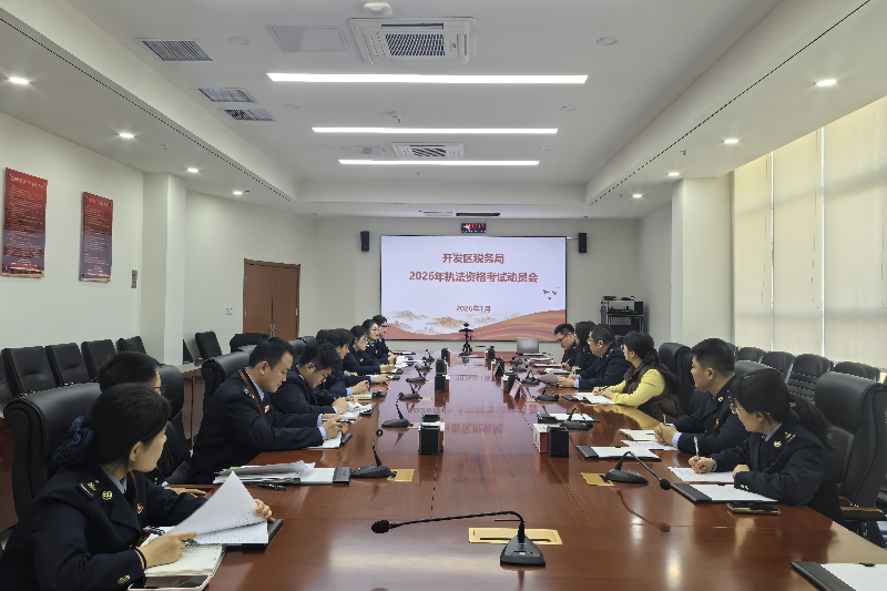 为迎接2026年执法资格考试,助力新入职公务员扣好税务执法工作的“第一粒扣子”,开发区税务局于近日召开执法资格考试动员会,法制科、组织人事科、第一税务所负责人及9名应试考生参会。