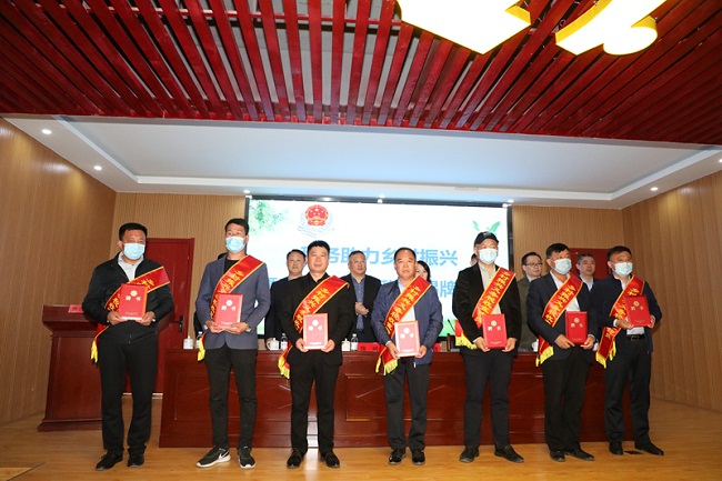 活动现场,与会领导为“乡村振兴义务税收宣传员”颁发证书,并为“农民税校”代表赠送《税务助力乡村振兴优惠政策指引》一书。