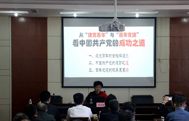 从1921年到2021年,中国共产党走过了整整一百年的历程,这是用鲜血、汗水、勇气、智慧和力量写就的百年辉煌史。千秋伟业,百年恰是风华正茂。孙玉欣老师从史、论、颂三个角度和党的历史的主题主线、主流本质、脉络和线索四个维度,综合阐述了中国共产党的成功之道,为我们进一步理解中国共产党为什么“能”、马克思主义为什么“行”、中国特色社会主义为什么“好”,理清了思路、加深了认识。孙老师的授课入情入理,声情并茂,深深地感染了现场每一名听众。