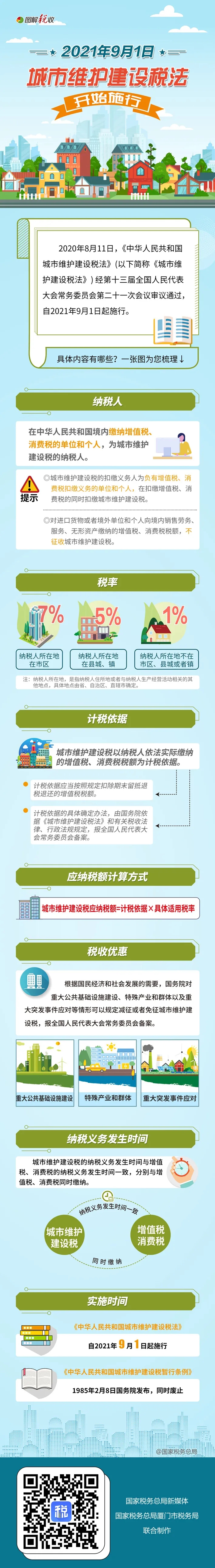 城市维护建设税法9月1日起施行!一图了解相关要点