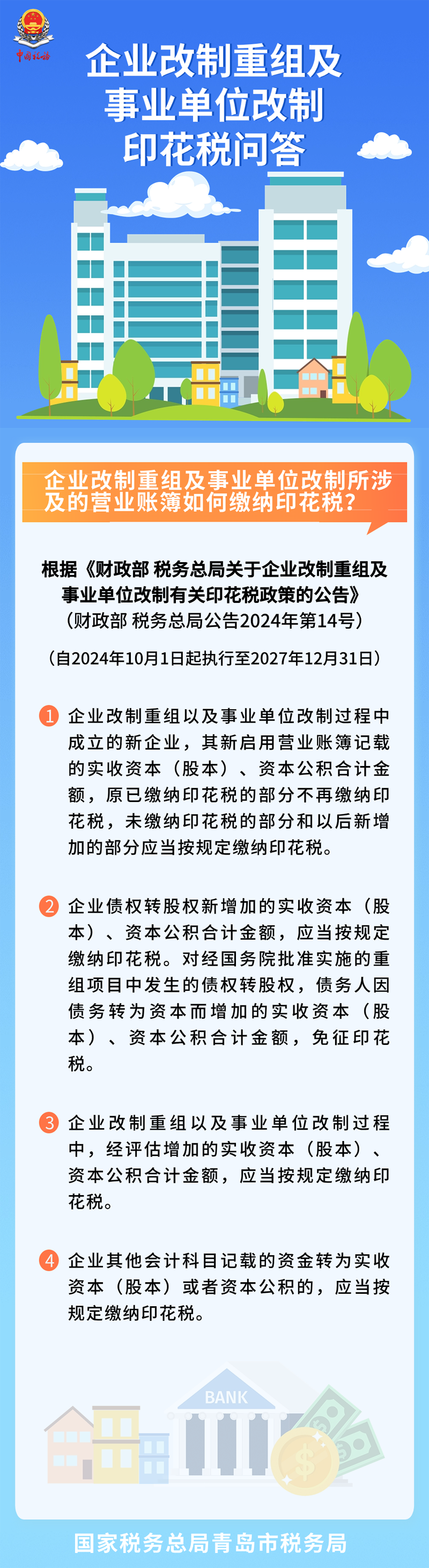 企业改制重组及事业单位改制所涉及的营业账簿如何缴纳印花税?