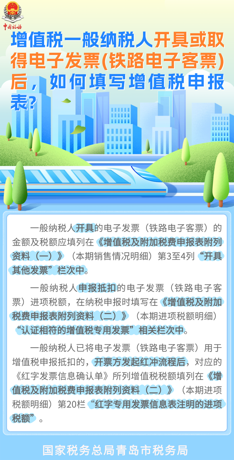 增值税一般纳税人开具或取得电子发票(铁路电子客票)后,如何填写增值税申报表?