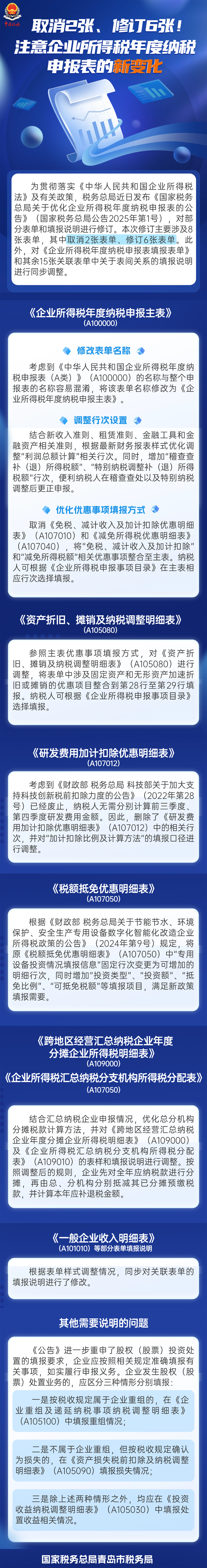 取消2张、修订6张!注意企业所得税年度纳税申报表的新变化