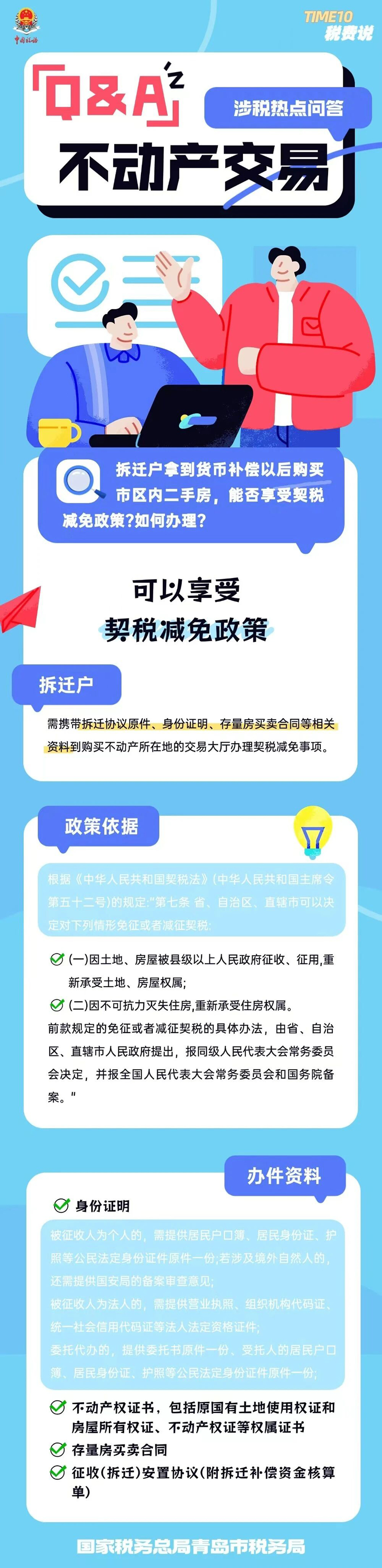 拆迁户拿到货币补偿以后购买市区内二手房,能否享受契税减免政策?如何办理?