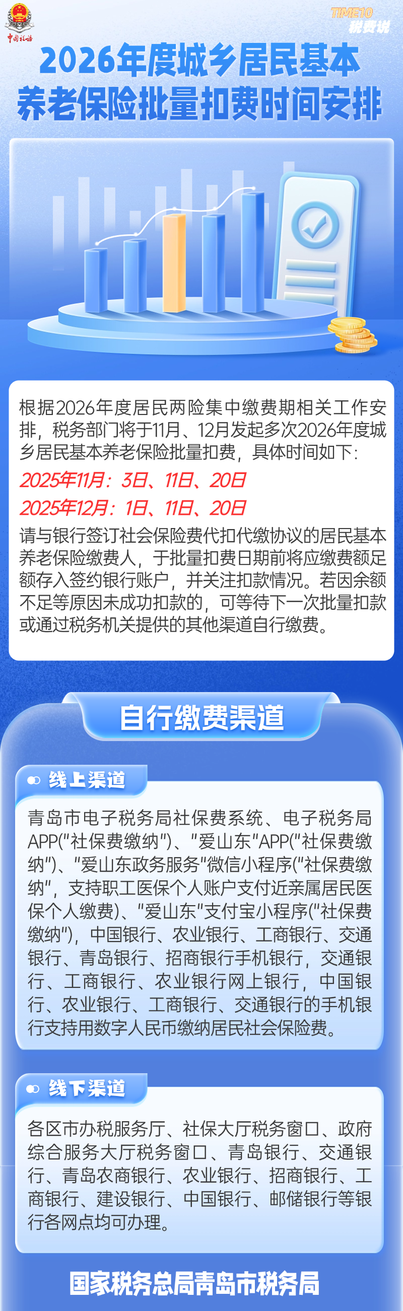 2026年度城乡居民基本养老保险批量扣费时间安排来啦!