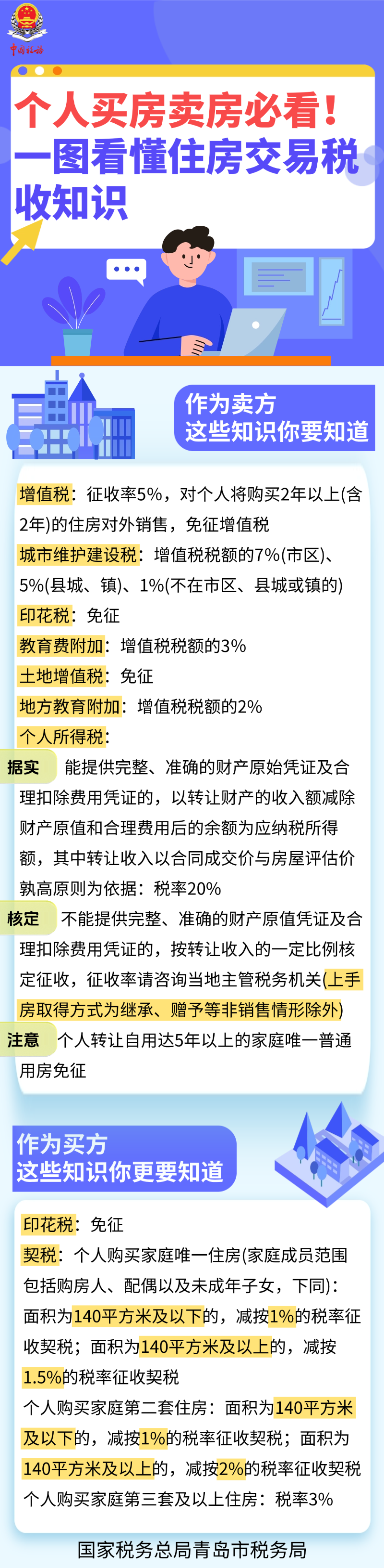 个人买房卖房必看!一图看懂住房交易税收知识