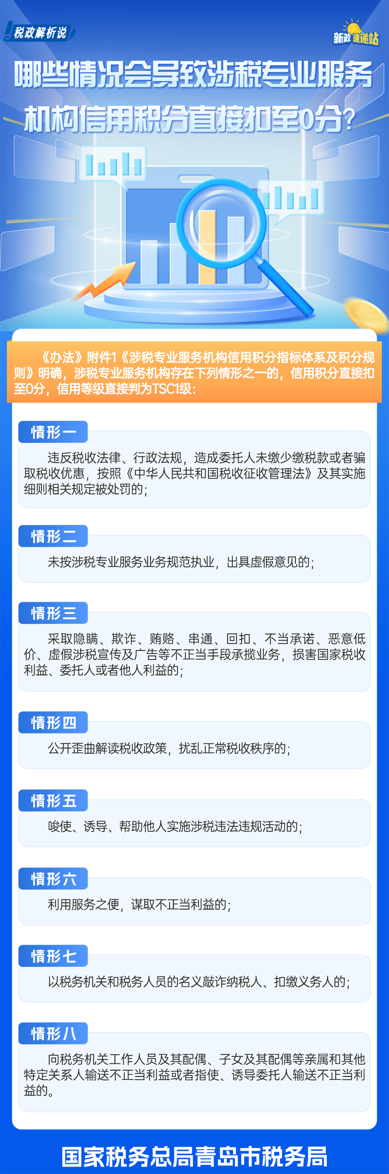 哪些情况会导致涉税专业服务机构信用积分直接扣至0分