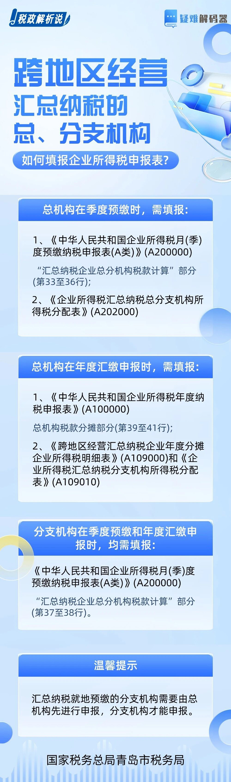 跨地区经营汇总纳税的总、分支机构如何填报企业所得税申报表?