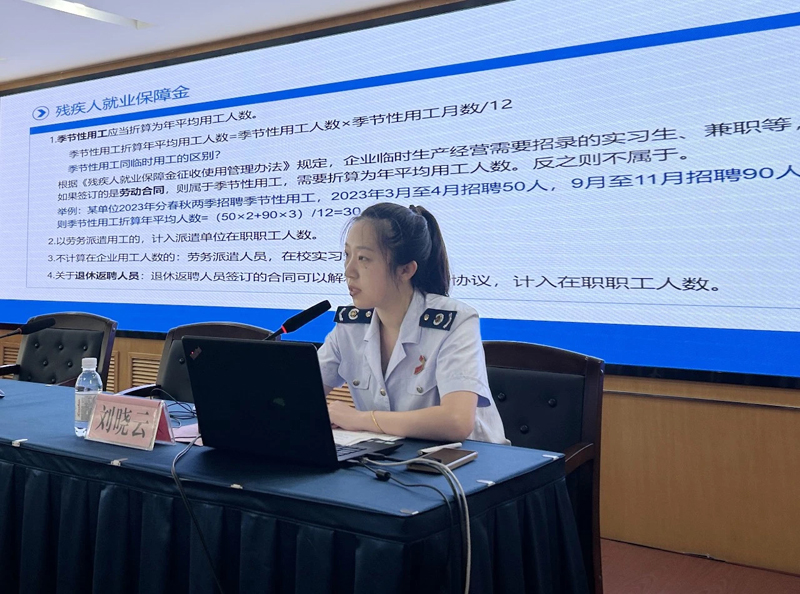 培训会上,市税务局非税收入处向与会企业详细介绍了残疾人就业保障金征收使用管理办法,就企业安置残疾人就业可享受的税费优惠政策,如残保金减免征、企业所得税加计扣除、增值税即征即退、个人所得税减征等进行详细解读;并就企业提出的疑惑和问题进行面对面解答。