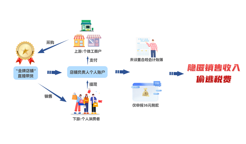 近期,国家税务总局青岛市税务局第一稽查局依法查处了市南区尚品优食品店直播销售偷税案件。经查,市南区尚品优食品店在互联网平台开设直播店铺销售海产品,该店铺通过个人账户收款等方式隐匿销售收入,进行虚假纳税申报,少缴增值税、个人所得税等税费共计177.12万元。国家税务总局青岛市税务局第一稽查局对其违法行为,依法作出追缴税费款、滞纳金并处罚款共计308.83万元的处理处罚决定。目前,涉案税费款、滞纳金及罚款均已追缴入库。